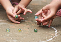 Dois irmãozinhos brincavam em frente de casa, jogavam bolinhas de gude.